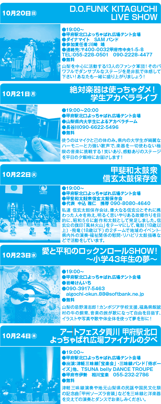 甲府市貢川美術館通り一帯/甲府駅北口よっちゃばれ広場テントにて開催