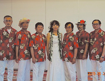 慰問やお祭りなどと各種イベントに出演しています。ハワイアン、歌謡曲、ラテンなど演奏ジャンルは様々ですがハワイアンの曲目によってはフラとの共演もあり、お楽しみ頂けます。