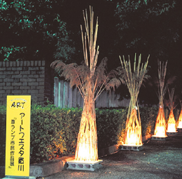 葦ランプ作りは自然環境の大きな役割として見直されている野原に自生している葦を利用して親子、ご夫妻、若者が二人以上の共同作業でランプを創作し期間中美術館通りに設置点灯し、企画終了後に制作者に返却します。